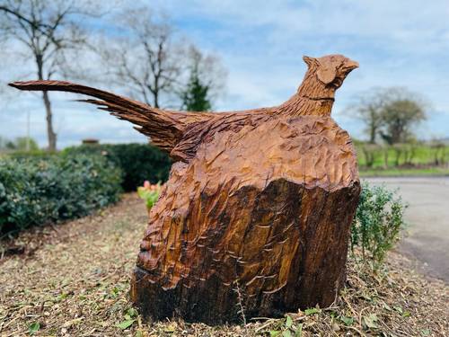 Environmental artist transforms fallen tree into our pheasant