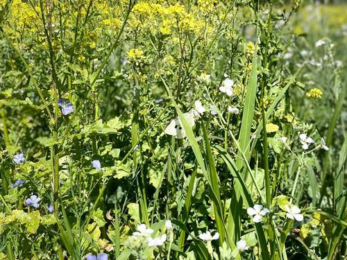 Sowing the neighbouring field with a complimentary wild bird seed mix (AB9) now creates a haven for nature. The mix includes millet, radish, kale, triticale and sunflowers all of which have brought in record numbers of bees and butterflies, and the seeds will provide a much needed food source in the coming winter months for birds.